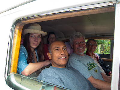 When we got back, the rest were waiting. Two local taxis were hired to take the 12 of us to the organic farm. The one I got was a 1934 Cadilac which must have been a stretch limousine in its time. As all such cars, the interior is pretty worn out but the exterior is still pretty good shape. Still running at a speed it once ran, which is not very fast at all. All the dials must have faded so the owner twinked it all in place.